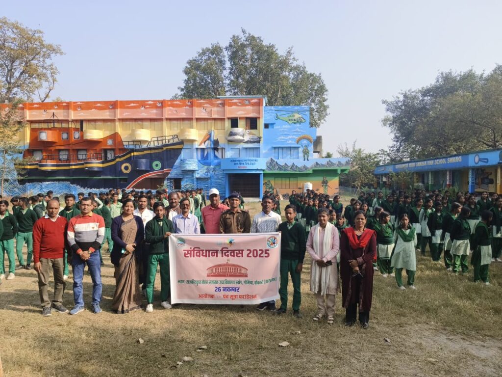 On the occasion of Constitution Day 2025, Panch Sutra Foundation organized an awareness session at the school campus, where a distinguished resource person addressed students, teachers, and community members. The session focused on the significance of the Indian Constitution, fundamental rights and duties, and the importance of civic responsibility, contributing to the promotion of democratic values and constitutional awareness.